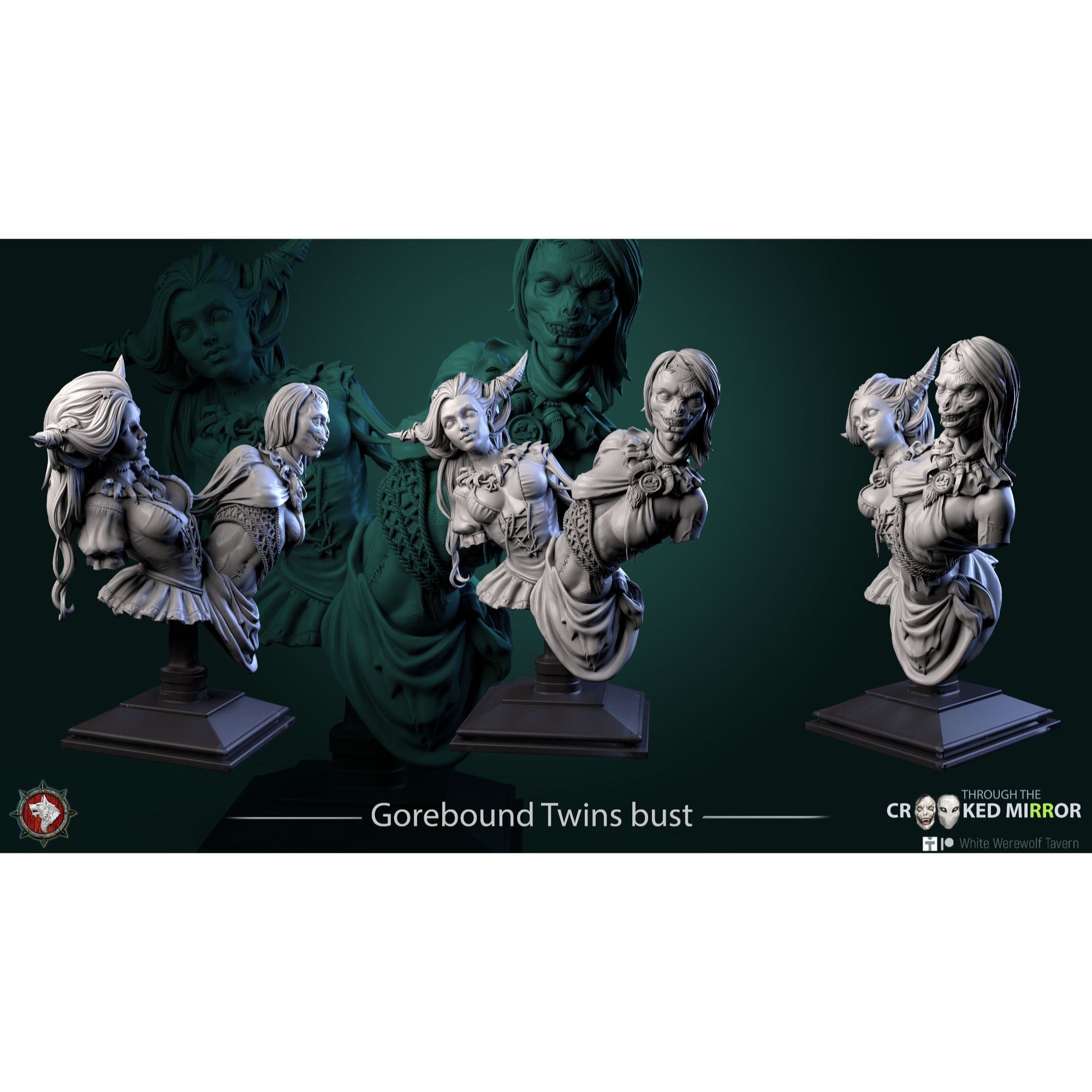 Gorebound Twins BUST - Through the Crooked Mirror - 3d Printed Miniature Sculpted by White Werewolf Tavern