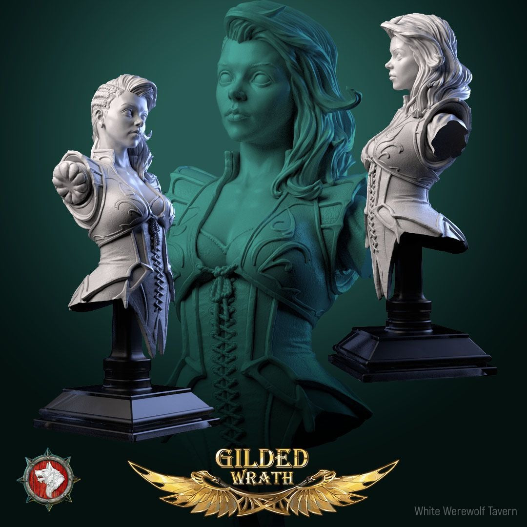 Myra Forgeheart Bust - Gilded Wrath - 3d Printed Miniature Sculpted by White Werewolf Tavern