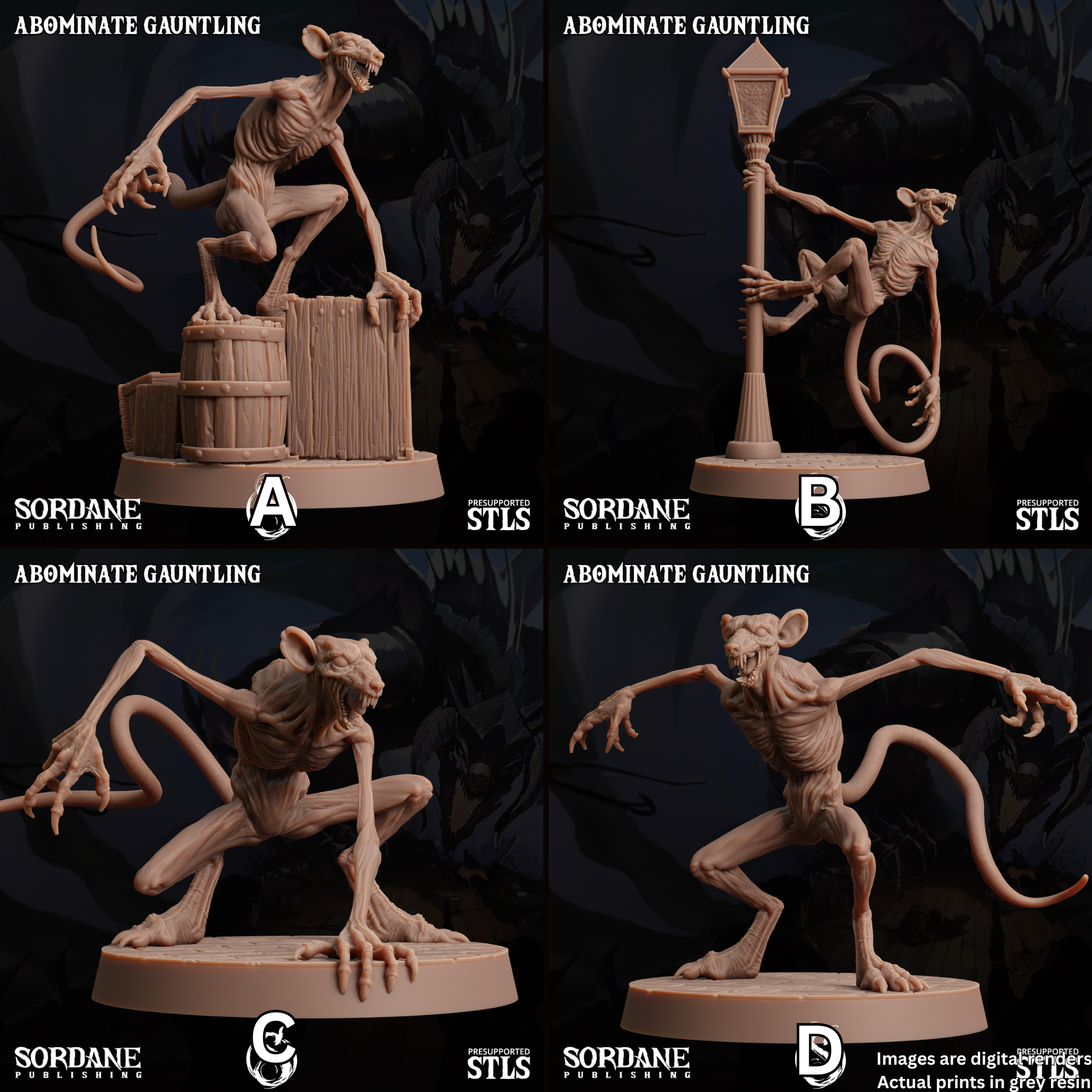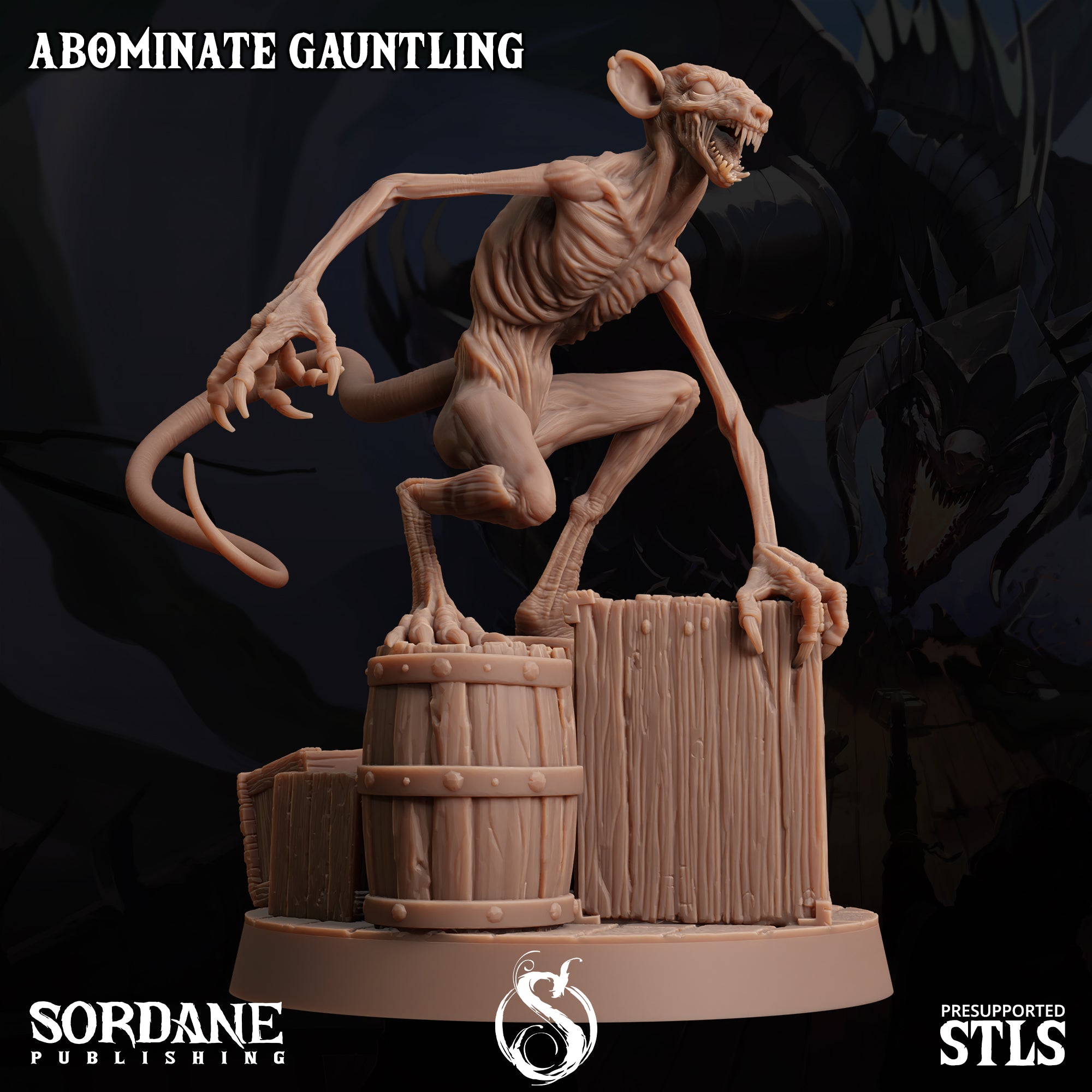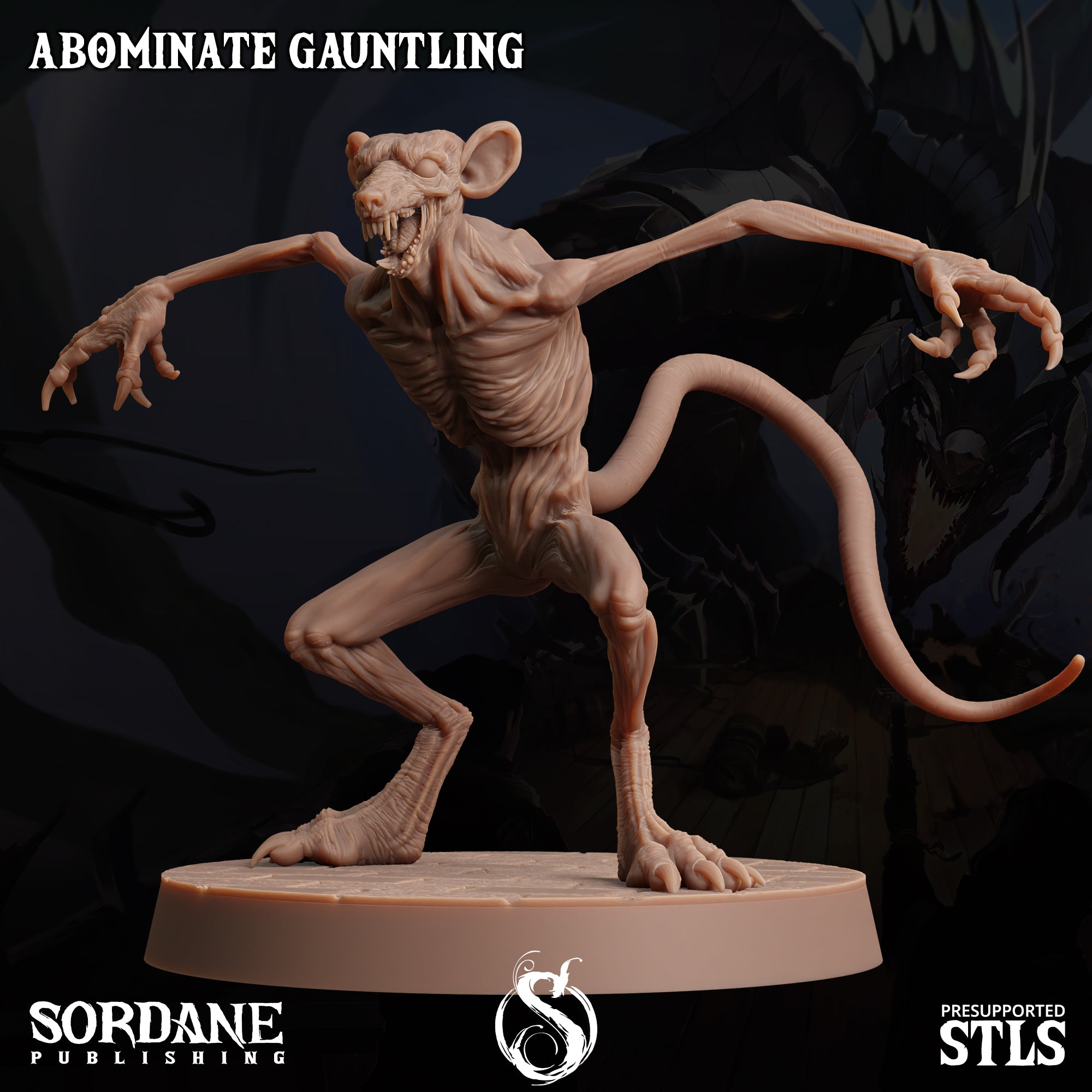 Abominate Gauntling (Wererat) - Unpainted 3d Printed Miniature sculpted by Sordane Publishing